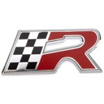 Chromová nálepka na auto styl Cupra R s racing vlajkou šířka 5,5 cm, výška 2,5 cm