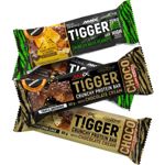 více než 21 % bílkovin lahodné a křupavé oříškové tyčinky s čokoládovým máčením na jedné straně zdroj vlákniny bez GMO