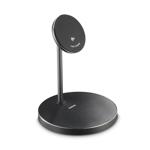 - stolní bezdrátová nabíječka pro dvě zařízení současně: magnetický držák pro telefon a nabíjecí podložka pro sluchátka