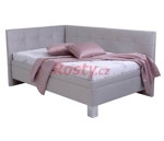Rohová válenda Fatima se zadním a bočním čelem je jednoduchá postel s lamelovým roštem a velkým úložným prostorem. Vstup