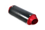 Tlumič výfuku na pitbike je z velice kvalitního materiálu. Design černo-červený elox. Výborně vypadá a má krásný dunivý