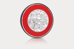 červená odrazka průměr 75mm na přinýtování v bílém rámečku