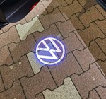 Svítící LED Logo projektor Volkswagen z malých projektorů, které zobrazí znak automobilky z otevřených dveří Montuje na