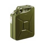 Plechový kanystr, certifikovaný TÜV Rheinland®, vyrobeno v Německu. Barva armádní zelená, matná.