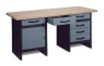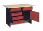Jednoduchý dřevěný pracovní stolek, se dvěma svěráky, kladívky a dalšími doplňky, pro všechny malé kutily. Pracovní p