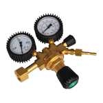 TLAKOVÝ VENTIL CO2 (kysličník uhličitý) pro technické účely. Redukční ventil je vyrobený z mosazi a vybavený dvěma manom
