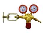 TLAKOVÝ VENTIL ACETYLEN pro svařovací soupravy. Redukční ventil má dva manometry, jeden ukazuje tlak acetylenu v lahvi,